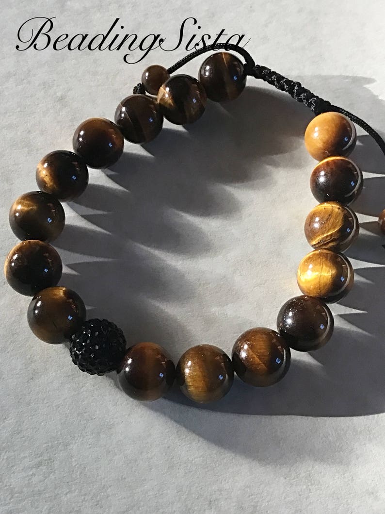 Tiger Eye Sliding Knot Clasp Beaded Bracelet 10mm Stones