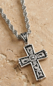 Twister Men S Silver With Floral Scroll Cross Necklace