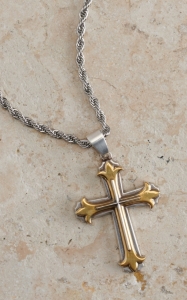 Twister Men S Silver With 3d Gold And Silver Cross Necklace