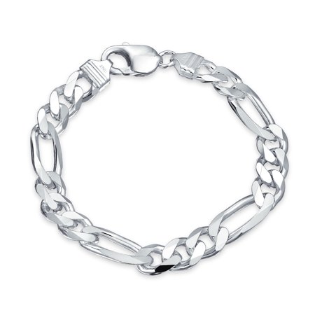 Mens Figaro Link Bracelet Engravable 250 Gauge Heavy Polished 925 Sterling Silver Made In Italy