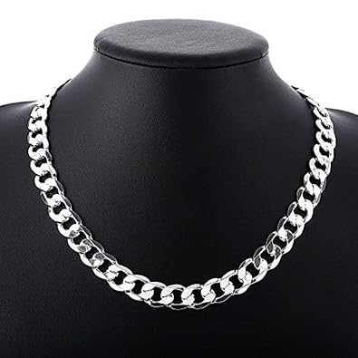 Nykkola Men S 12mm Sterling Silver Plated Curb Chain Necklace 20 Solid Thick Fashion Jewelry