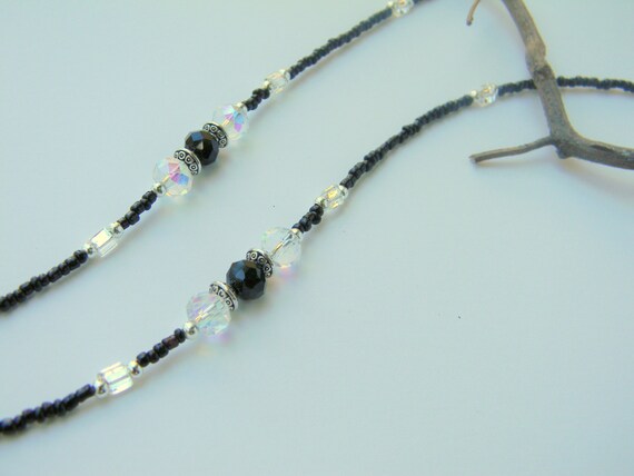 New Lanyard Silver With Black Crystals Luxury Necklace Lanyard Beaded Lanyard Beaded Lanyard For Badges Lanyards For Id Badge Handmade